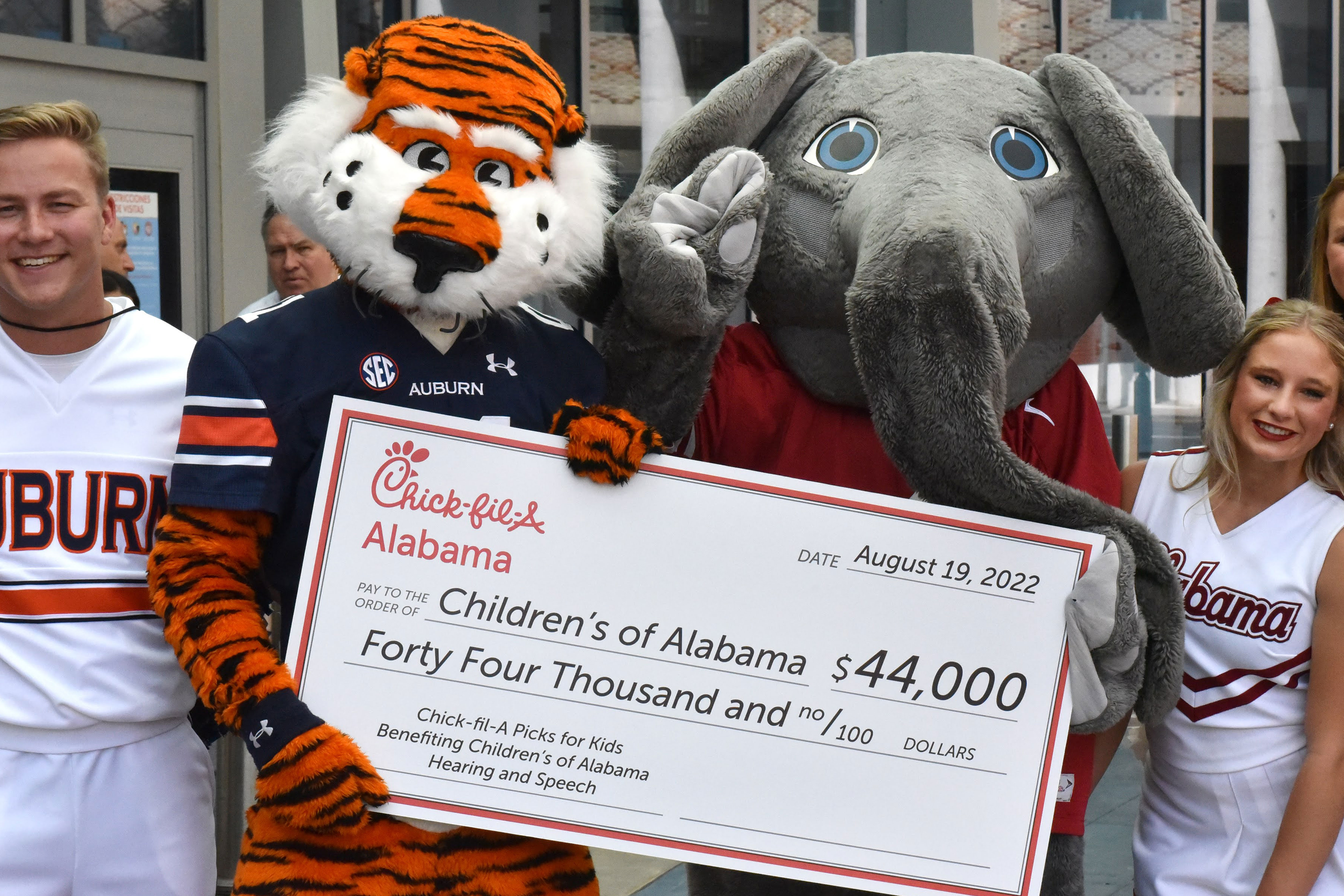 Epic foes on the gridiron, Alabama and Auburn have joined Chick-fil-A for a common cause during this football season.—helping ill and injured kids at Children’s of Alabama through its “Picks for Kids” program. With every Crimson Tide or Tiger interception, Chick-fil-A will donate $1,000 to help children treated at the state’s only pediatric hospital.